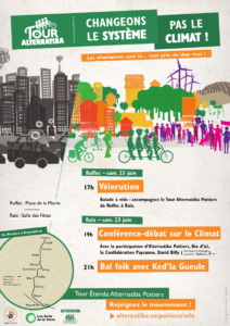 Conférence – débat sur le Climat (Alternatiba Poitiers), avec la participation de « Bio d’ici », la « Confédération Paysanne » et David Billy, chargé de mission TEPOS pour le pays du Ruffécois.